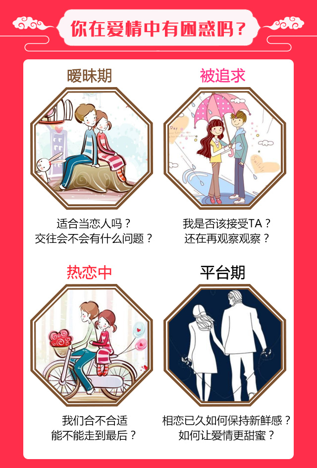 我和女朋友马上就要结婚了,可是她婚前恐惧很严重,很担心我不是她的真命天子,多亏老师的指点才化解了她心里的担忧,现在我们正在积极地婚礼筹备中!